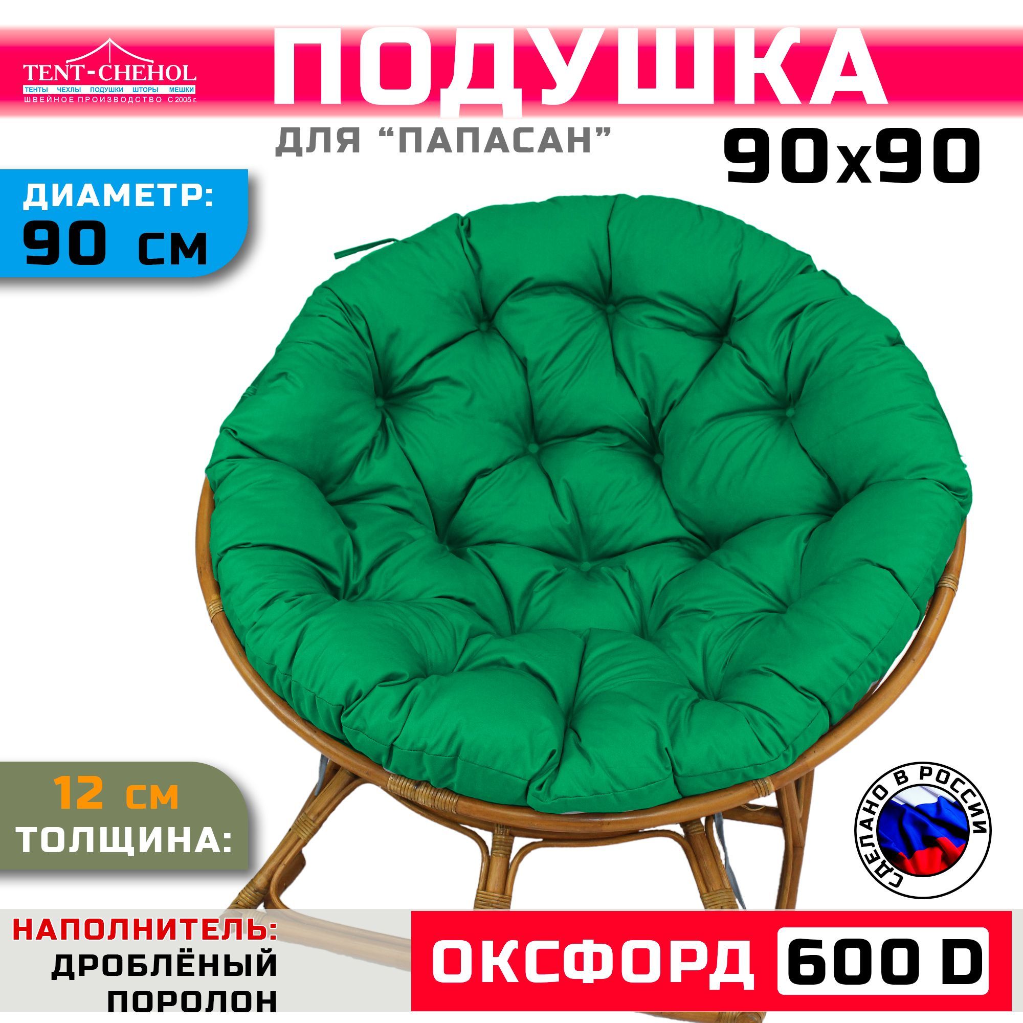Краткое описание «Подушка для кресла и качелей 90 см, зелёная (Оксфорд 600)»